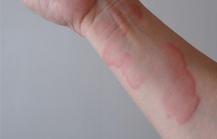 Hives and skin reactions can be an indicator of contact with an allergy.